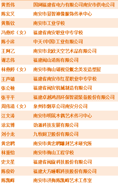 11月2日,南安市召开第六批“南安工匠”命名颁奖会,全市20名技能人才获命名“南安工匠”并受表彰